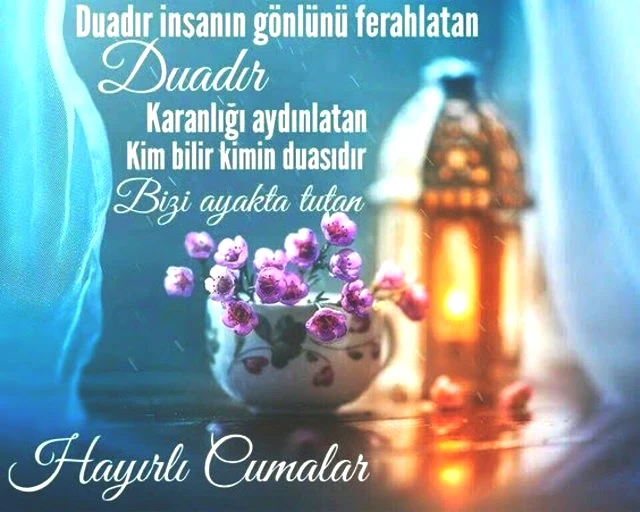 Yaptığın her dua, dertlerine deva, sıhhatine şifa, gözüne nur, gönlüne huzur, ailene ve sevdiklerine mutluluk getirsin. Hayırlı Cumalar dilerim.