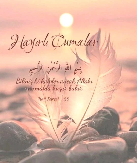 Kalbimiz imanla, gönlümüz İslam ile, dilimiz Kur'an ile dolsun; kulağımız ezan sesiyle, gözlerimiz nurla aydınlansın. Evimiz huzurlu ve neşeli olsun. Hayırlı Cumalar.